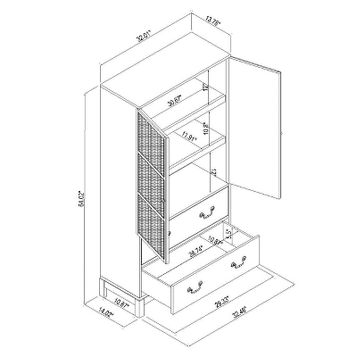 64 Inches (H) x 32.5 Inches (W) x 14 Inches (D)