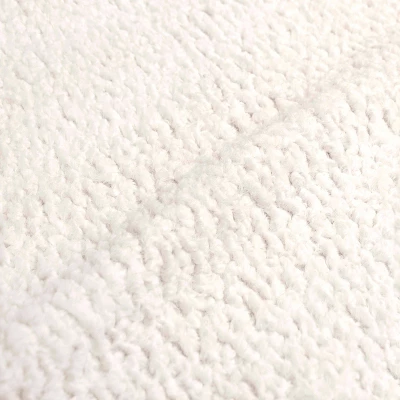 - Rubberwood frame with sheepskin-look fabric upholstery in a light natural hue